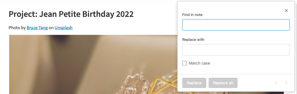 After that it’s just Command (⌘) F on a Mac or Ctrl F on Windows to bring up the Find in Note dialog