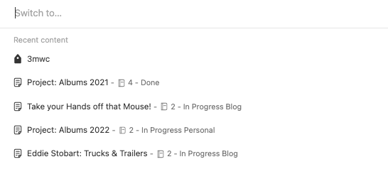 Or press Command (⌘) J on Mac or Ctrl Q on Windows to open the switcher.